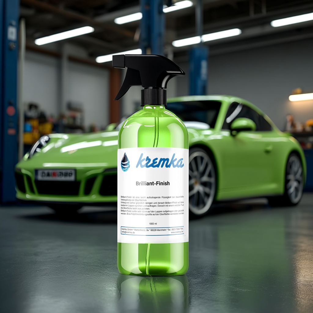 Brilliant Finish ist eine neue, innovative und leicht aufzutragende Flüssigkeit zur dauerhaften Nano-Versiegelung von Oberflächen. Sie ist hervorragend geeignet für Autolacke, Felgen, Glasoberflächen, Kunststoffe, Fliesen und auch Steinoberflächen.