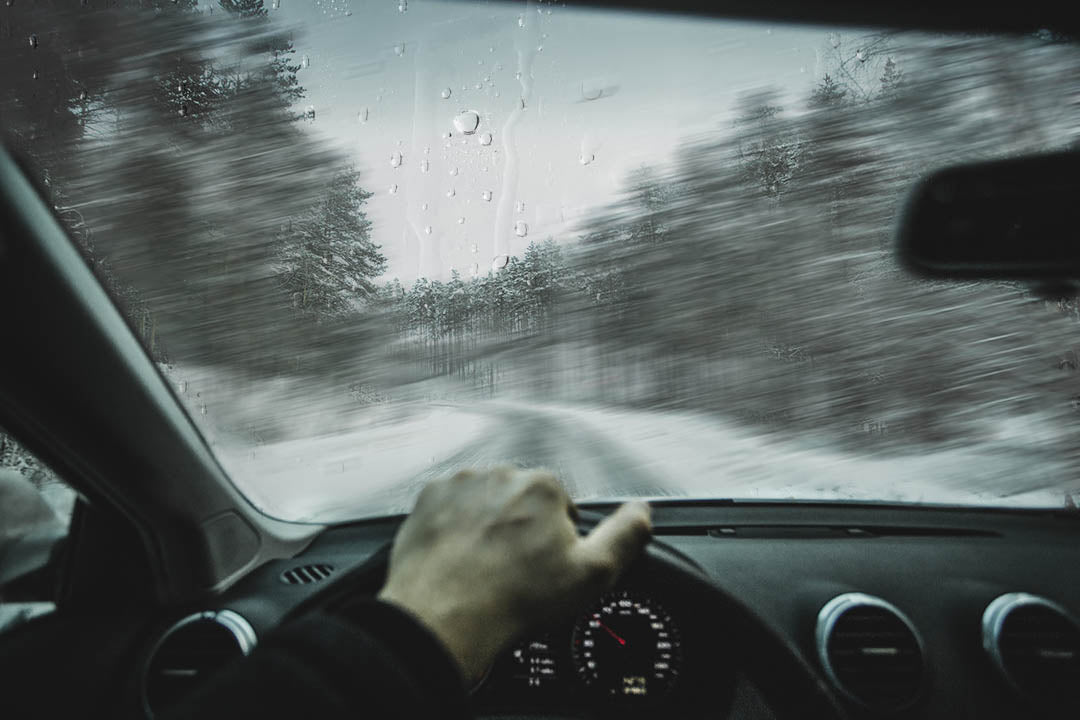 Vorher: Regentropfen haften an der Windschutzscheibe und beeinträchtigen die Sicht.